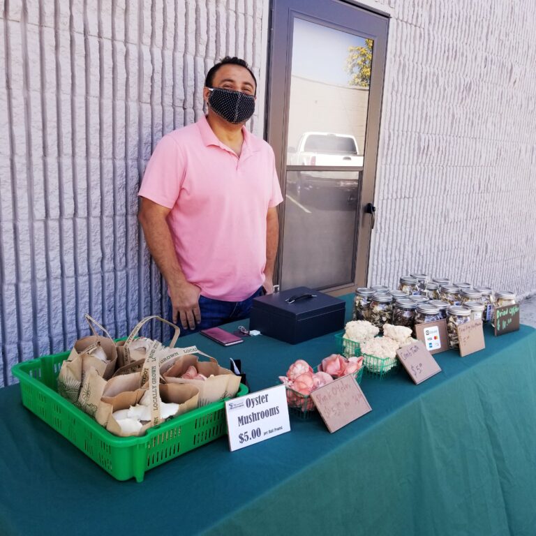 Lark & Larder, the locally focused grocery store Harrold co-owns, started hosting pop-up mini markets in the spring. Almost every weekend, Mohammed Ali of Treasured Mushrooms showed up alongside other producers to claim a free spot and sell vibrant pink oyster mushrooms from behind his mask.