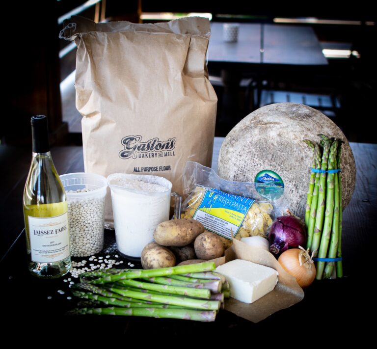At Meriwether, Co-owner Kate Pettis started a similar initiative. She reached out to Waterwheel Gardens, Ohana No-Till Farm and North End Organic Nursery to put together Farmers Market Baskets of fresh produce, plant starts and cider that customers could shop for online. Meriwether also rolled out collaborative holiday baskets and joined forces with food trucks Crisp and Bistro Babe for “Take and Bakes.” Customers could snag an easy-to-reheat dish and sides from the food truck, add cider and pick it all up in one place.